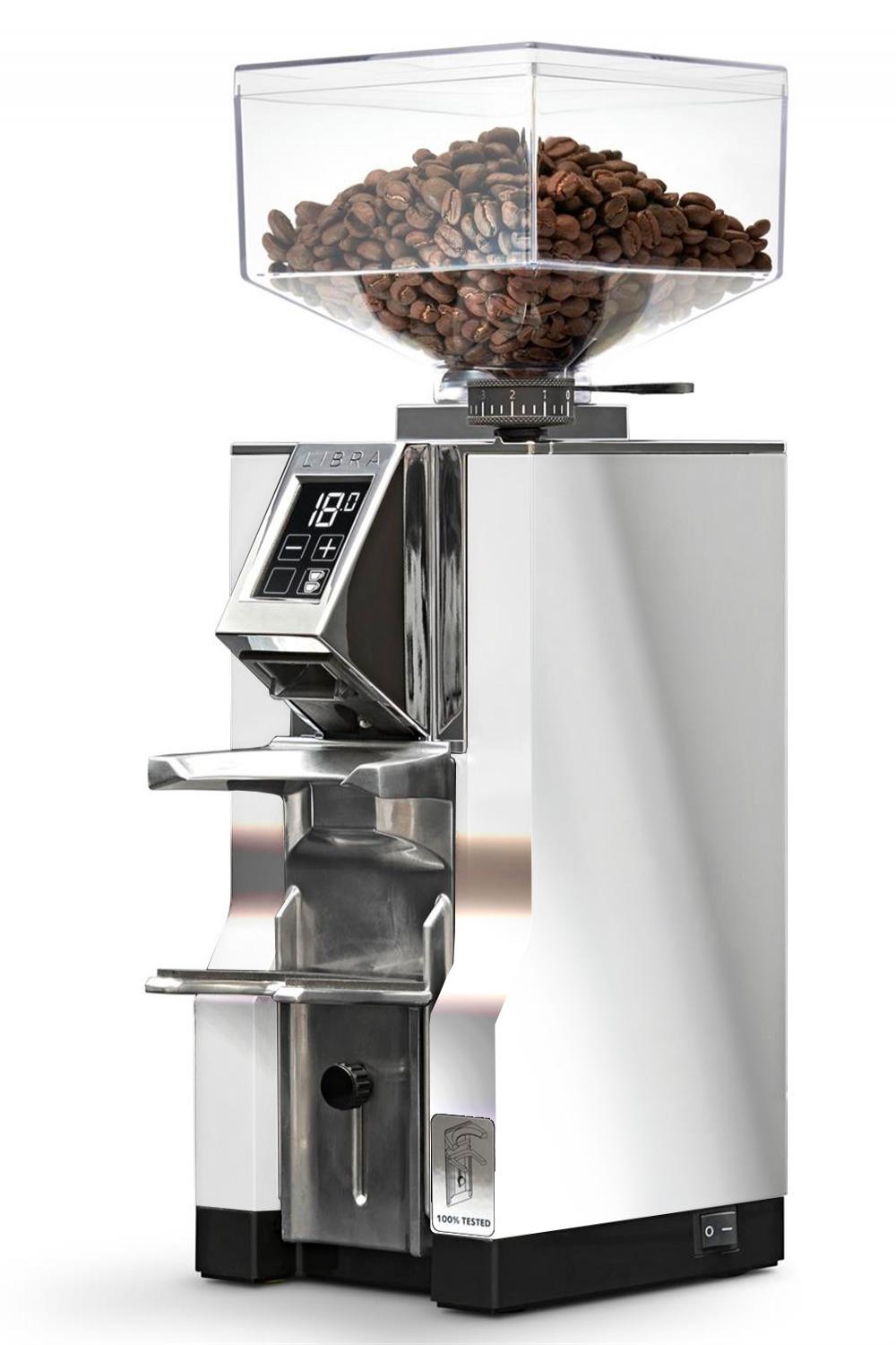 Die Eureka Libra ist eine kompakte, leistungsstarke Kaffeemühle, speziell konzipiert für präzises Mahlen im Heim- oder Kleinbetrieb. Ausgestattet mit flachen 55 mm Mahlscheiben aus gehärtetem Stahl liefert sie konsistente Ergebnisse über den gesamten Mahlbereich. Die mikrometrische, stufenlose Feinjustage erlaubt eine präzise Anpassung der Mahlgrade.